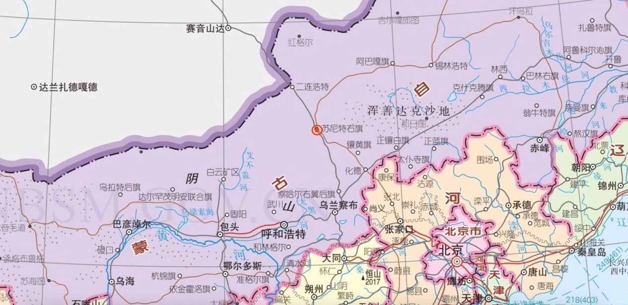 内蒙古自治区锡林郭勒盟苏尼特右旗。这里地广人稀,面积2.23万平方公里,比北京市还大,而总人口只有6.9万人。(图片来源/百度地图)