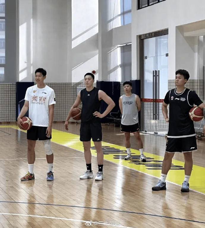 配文:赵睿穿着北京首钢的训练背心,出现在广东男篮的训练基地训练,我错乱了,图片来自关辛。